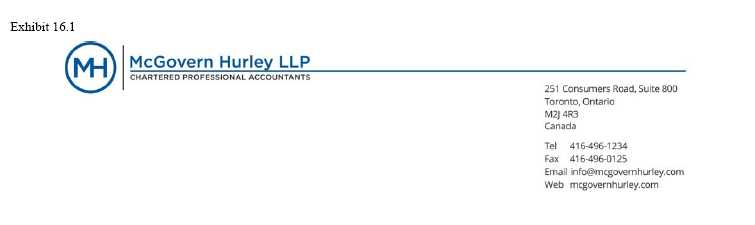 We have read the statements under item 4.01 in the Form 8-K dated October 29, 2019 of Security Devices International, Inc. (the Company) to be filed with the Securities and Exchange Commission and we agree with such statements therein as related to our firm. We have no basis to agree or disagree with the other statements made by the Company in the Form 8-K.